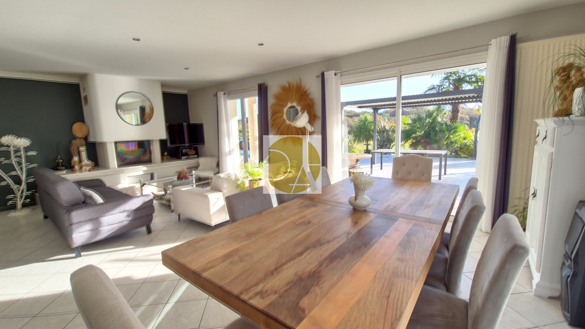 L'Agence Pyrénées est ravie de vous présenter en exclusivité cette villa ! Une pépite : si vous cherchez l'équilibre parfait entre la convivialité, le calme et fonctionnalité au quotidien, cette villa est faite pour vous !Parmi ses point forts : une pièce de vie XXL avec un séjour de 55 m² baigné de lumière avec la chaleur de la cheminée et la modernité de la cuisine ouverte. Le lieu idéal pour les repas en famille ou entre amis.Le confort de plain-pied : 3 chambres sur 4 en rez-de-chaussée équipées en dressings pour une accessibilité et une fluidité de vie simplifiée. Et une salle de bains récemment rénovée et équipée d'une grande douche et de la double vasque.Des espaces modulables : un bureau pour télétravail ou dressing ou une salle de jeux et un espace en haut des escaliers pour les arts créatifs Et un cellier avec des rangements et l'espace buanderie : hyper pratiques.L'extérieur c'est L'esprit vacances" : une terrasse plein sur avec sa pergola pour les déjeuners à l'ombre prolongée par un espace lounge dédié aux soirées détente ou repos après la piscine équipée de l'alarme.Le jardin planté d'olivier et de cactées, est extrêmement simple à l'entretien. Aucun vis-à-vis, quartier résidentiel à proximité du bourg de Montardon.Côté technique et pratique : un garage à motos et un double abri voiture avec la borne de recharge (très utile à l'avenir !) le tout accessible depuis la maison. Un portail coulissant électrique, un visiophone, les volets électriques, installation de chauffage et eau chaude vis pompe à chaleur, raccordée au tout à l'égout.Maison régulièrement entretenue et tenue avec soin : aucun travaux à prévoir ! posez vos valises et remplissez TOUS les placards. L'avis de l'expert : " ce qui ravit dans cette villa c'est la sérénité qui s'en dégage et l'esprit de convivialité qui règne. C'est un bien clef en mains qui répond parfaitement aux exigences actuelles".Envie d'en savoir plus ou de programmer une visite ? Appelez moi : 06 20 87 10 99 .