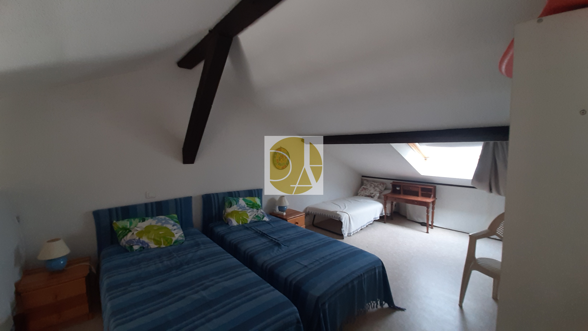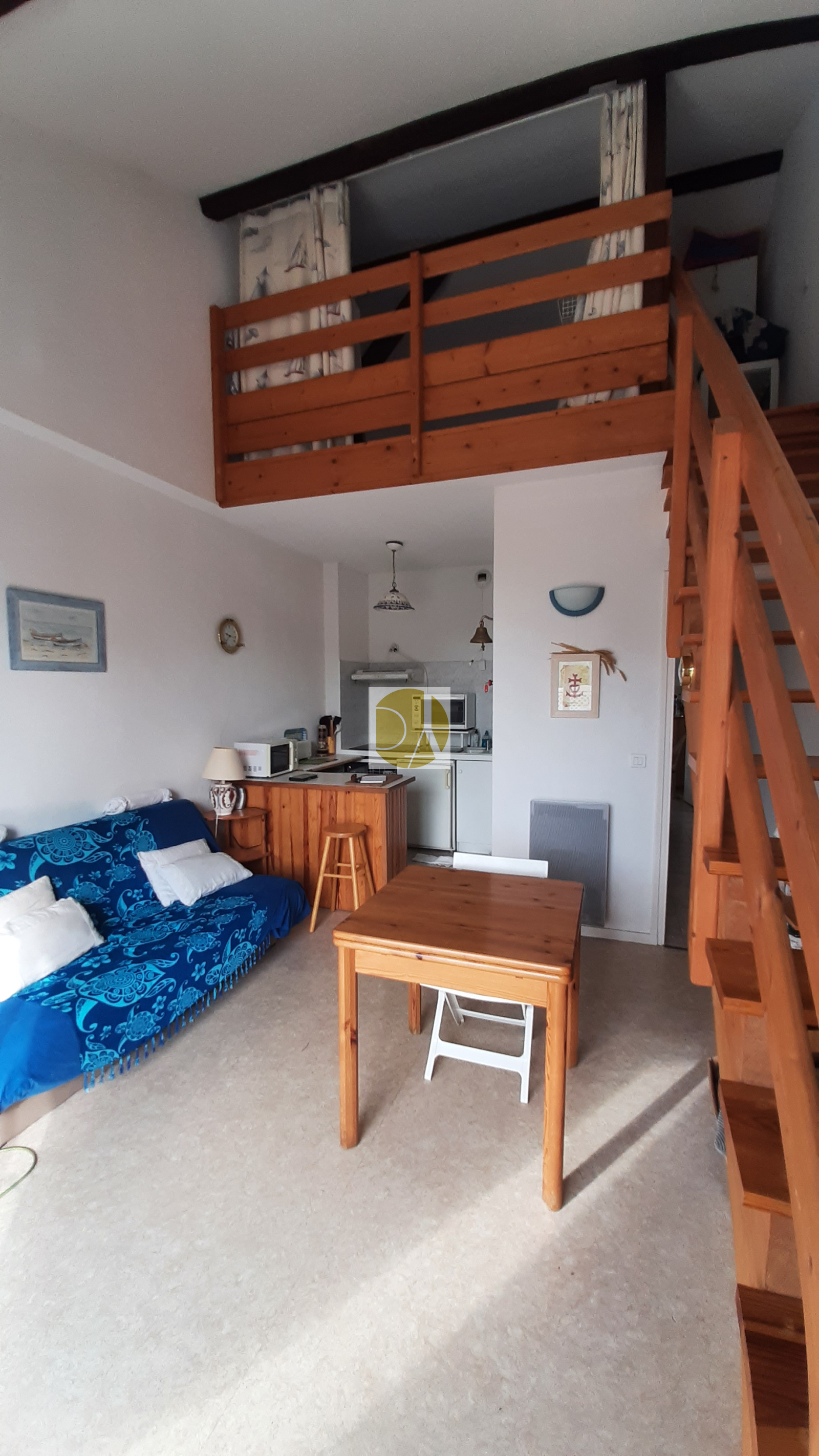 Au calme, dans une petite copropriété, au dernier étage, à proximité du marché aux poissons, du port, des commodités et commerces, appartement en duplex offrant séjour ouvert sur le coin cuisine, une vraie belle chambre en rez-de-chaussée, salle de bains, wc séparé et un grand espace à l'étage aujourd'hui dortoir.